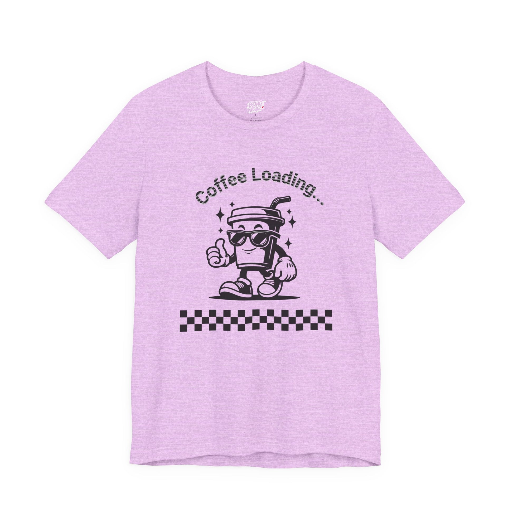 This retro 'Coffee Loading' Tee is perfect for caffeine lovers who appreciate a fun and quirky design. It gives off a laid-back and playful vibe, ideal for casual wear or lounging around at home. Great for coffee enthusiasts and those who enjoy a humorous graphic tee. Perfect for wearing on lazy weekends, coffee dates, or casual outings.